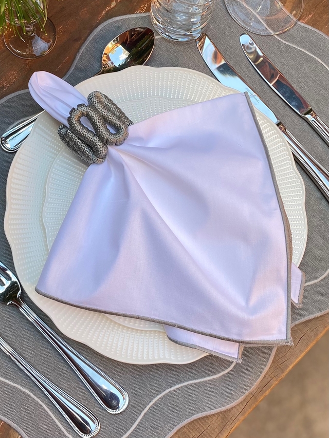 Guardanapo Branco com Bordado Ponto Cheio Cinza