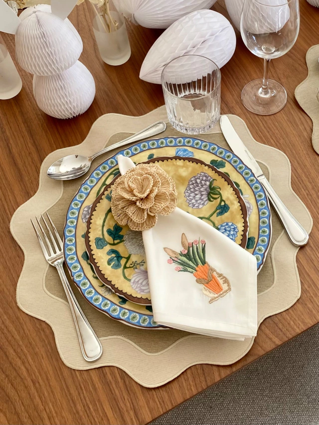 Jogo Americano Impermeável Ondulato Bicolor Bege com Areia com bordado Ponto Cheio Areia