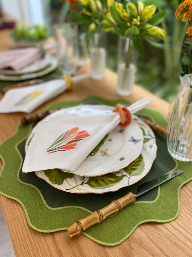 Jogo Americano Impermeável Ondulato Bicolor Musgo com Kiwi com bordado Ponto Cheio Kiwi